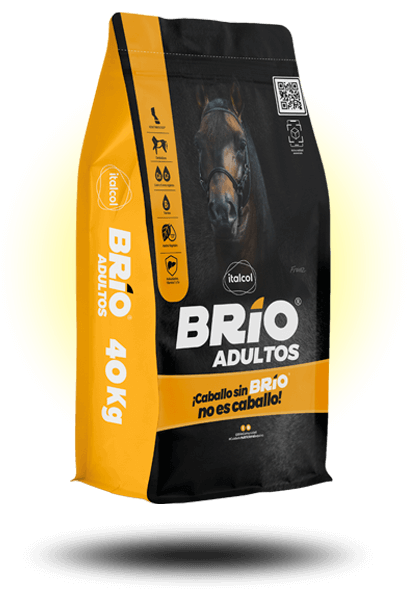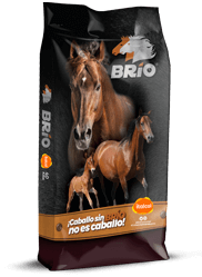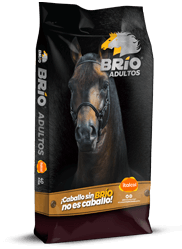 BRIO ADULTOS es suplemento alimenticio para Caballos adultos de trabajo pesado, como complemento a pastos y forrajes. Se debe suministrar a razón del 1% a 1.25% del peso vivo, dependiendo de la condición corporal y actividad, en una frecuencia mínima de 3 raciones diarias y sin superar 2 Kg por ración.