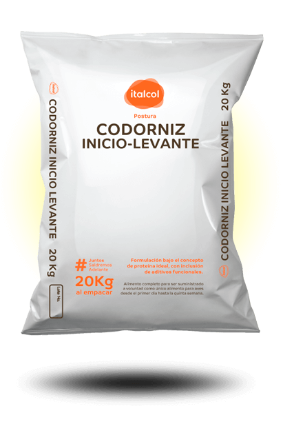 Codorniz inicio levante es un alimento alimento para suministrarse desde el día 11 al día 40 de edad a codornices en piso o jaula. Siga al pie de la letra las instrucciones de uso. No utilice este alimento en especies, ni en etapas diferentes a las recomendadas. Almacenar en sitio cubierto con adecuada ventilación y sobre estibas.