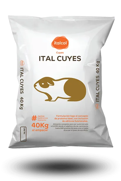 Italcol Cuyes es un alimento peletizado de alta digestibilidad que ofrece una nutrición completa para todas las etapas productivas. Contiene aminoácidos esenciales (lisinas y metionina) para el crecimiento muscular, ácidos grasos que mejoran la carne y el bienestar, vitamina C para fortalecer el sistema inmune, y minerales como calcio, fósforo, zinc, selenio para huesos fuertes y defensas óptimas. Aporta la energía necesaria para un crecimiento rápido, uniforme y un excelente rendimiento productivo.