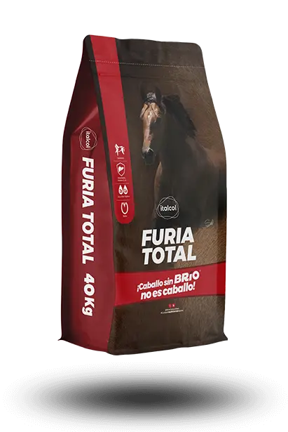 FURIA TOTAL es un suplemento alimenticio para ser suministrado a caballos adultos de todas las razas. Debe ser ofrecido a razón del 0.5% al 1% del peso vivo del caballo, de acuerdo con el nivel de trabajo y condición corporal, divido en 3 raciones al día.